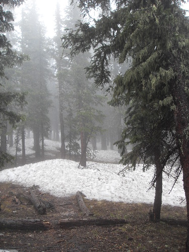 Eerie look with snow and fog